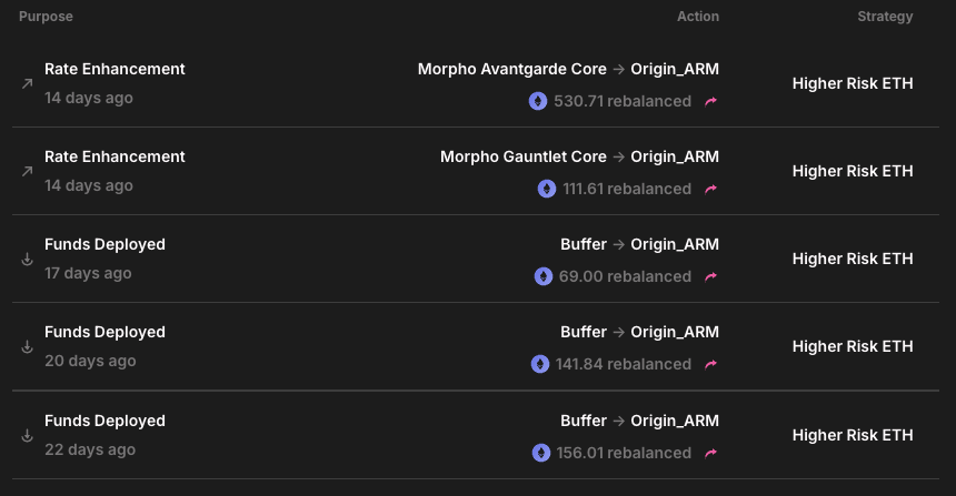 In the last month the stETH ARM has facilitated 61682.288 ETH in arbitrage volume, with the Morpho market integration generating yield for the days when the vault was unable to purchase stETH below peg: